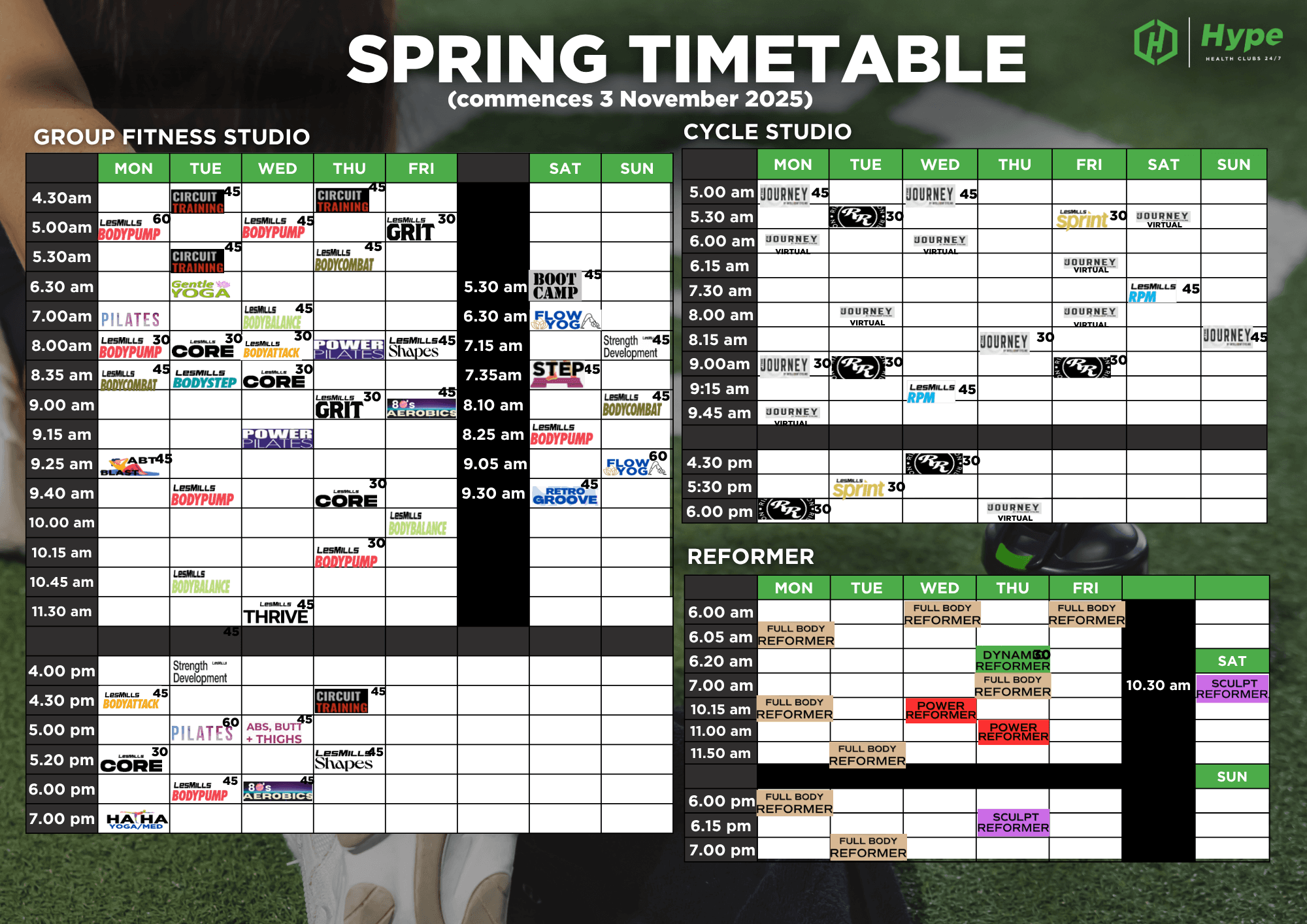 See our group fitness timetable below and discover a wide variety of classes to suit every style and goal. From Les Mills, cycle classes, Reformer Pilates and everything in between, there’s something for everyone to enjoy.